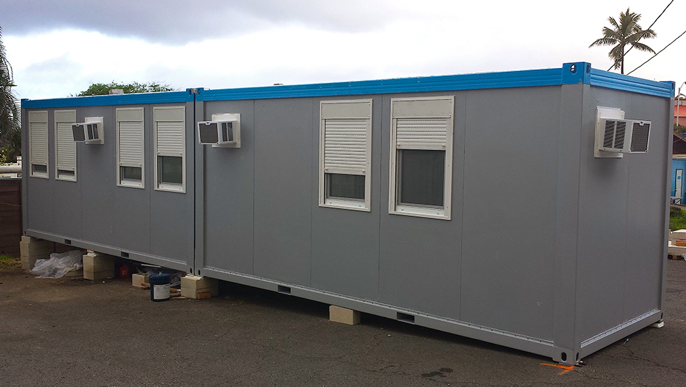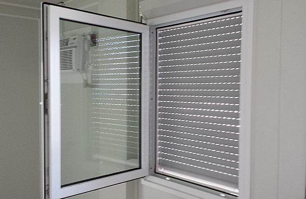 When we finished this all-steel modular office for a commercial client it was a major moment in our history! It is 8' x 40' per the clients desired dimensions. We could have built them a 16' x 20' for the same cost, but this is what they wanted for their operation. Notice the steel roll down window shades! they can go all the way up or down and anywhere inbetween. Great for keeping the sun out!