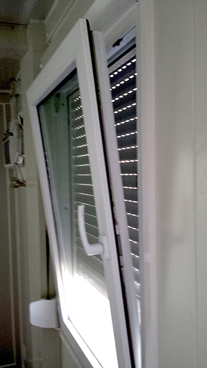 The windows and doors are super heavy duty, dual glazed and heavy as heck! Wall panel with window is 180 lbs! Super nice doors and windows, and lock sets are top notch security type. The factory windows can open completely for 100% air flow, lock shut or open at the top as shown. Notice the strap that allows you to open and close the exterior shutters to block out the sun if desired from inside the office or home. Nice stuff! We have one more of these to build for our client, then we will be building our model home shortly after the new year. Click here to see the rough assembled model home and floor plan. We are almost ready to launch residential home offerings soon, sorry for the long as heck wait, it has been more involved than expected. |
