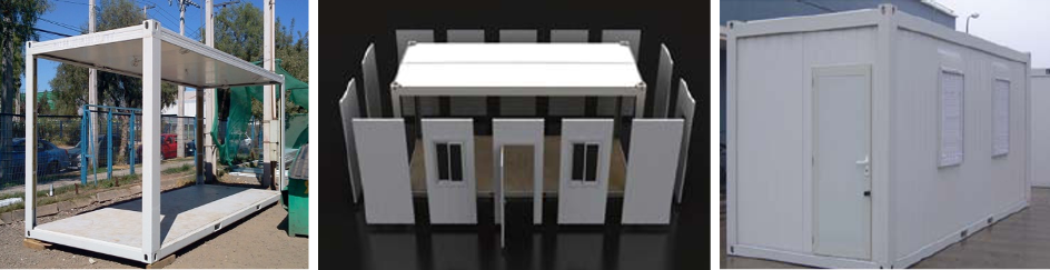 The images below illustrate how the modules are assembled. The image to the far left is the module frame, which is basically bolted together on-site. The middle image shows the wall panels and as you can see, each panel is basically 4’ wide. The reason they are not exactly 4’ wide is the fact that the vertical pillar widths need to be subtracted from the overall width of 20’ on each 20’ wall. The images below illustrate one 8 x 20 module with wall panels wrapping around the entire frame. Most homes are not going to be made of only one module, but no matter how you put the modules together, the wall panels assembled on the exterior perimeter walls of the final structure are all basically 4’ wide, and come in various window and door configurations. We anticipate that many customers will want custom doors and-or windows. That will be able to be accomplished by installing solid wall panels in those areas, cutting out the rough opening for the desired custom door or window and installing those non-factory issued doors or windows. The image on the far right shows one 8 x 20 module fully assembled, looking like a mobile office or similar. Your home does not have to look like a bunker, there are many different exterior finishes that you can choose from. BTW, we will be offering portable construction office trailers and kiosks, spare rooms etc in any combination of 8 x 20 modules. You can put modules together along the 20' lengths for a home, office or any other structure that is 20' wide and as long as one wants to go with absolutely no vertical posts in your way. We find that making your living space from one group of modules joined along the 20' long dimension going as deep as desired, and putting bedrooms and bathrooms attached but outside of the living area in separate “pods” in either single 8 x 20 modules, or double wide modules for a 16 x 20 bedroom-bathroom suite. Not everyone will be satisfied with what they can design using our modules. For those people, dont forget that we also design-build conventional wood “stick” homes, aerated concrete block homes and shipping container homes. We will make one of these work very well for you, and offer you the best team in hawaii. We have an A+ rating by the better business bureau, check out their site to verify that fact.